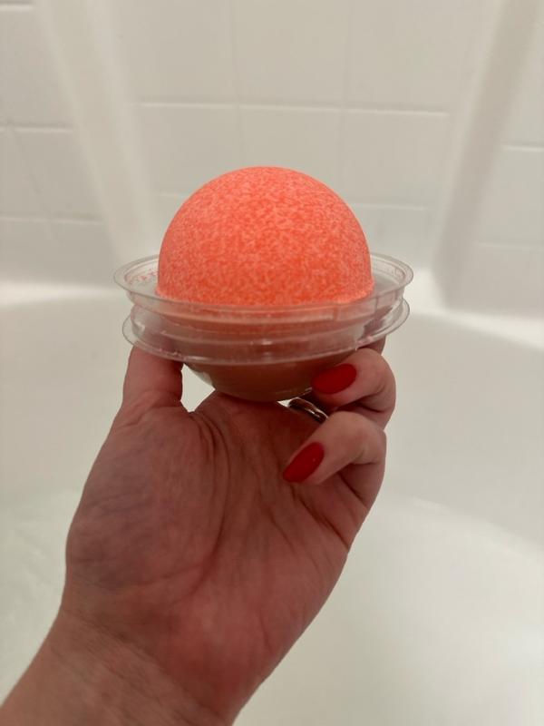 This is by far my new favorite bath bomb. The scent is divine, and the ingredients leave my skin silky smooth. This is a large bath bomb, with a great price tag!