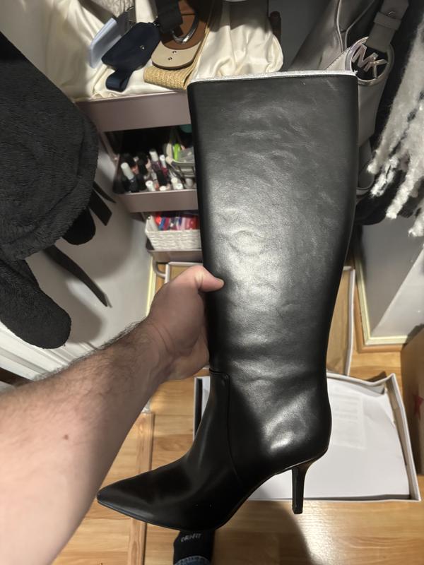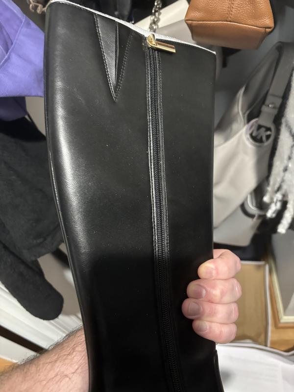 I got these boots with my wife in mind. They’re quite tal with the heel, but they have a nice look and I believe they’re leather. They feel of good quality. She likes but says they do run a little tight for her.