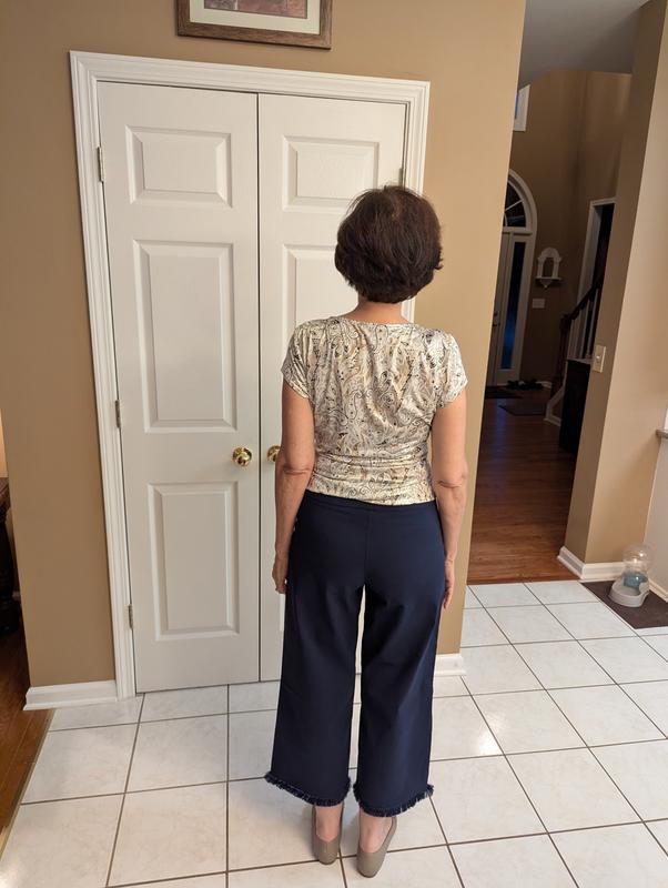 These Capri pants are so nice. They fit well. I love the Fringe bottoms. I feel they are more dressy then casual pants and run a bit longer then Capri length. More like an ankle pant which i prefer.
