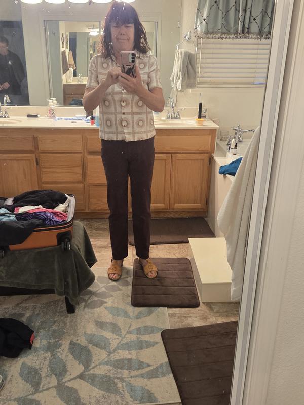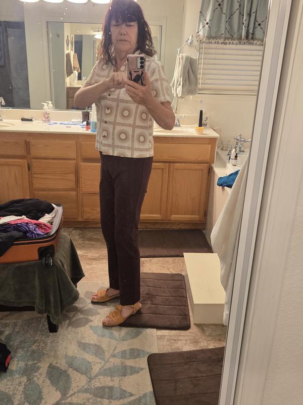 Since my accident,I have not been able to shop in a store. I lost 20 poinds. I have pants from the same brand and was able to find the color I wanted, consult the size chart and find the short length. It was a perfect fit. No sagging or hemming.