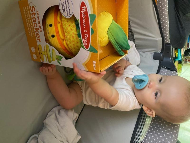 this adorable pineapple stacker is just adorable! i bought it for my seven month old grandson & it is just the cutest thing. it’s bigger than i expected which is a good thing! i love that it’s soft too, he can put it in his mouth as he is teething now! such a great product at such a great price! LOVE IT!