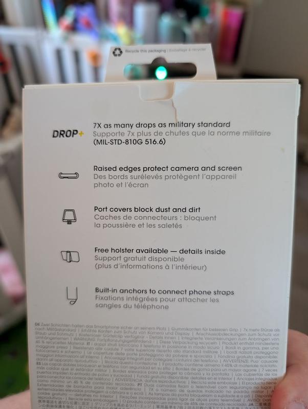 Super excited to try Otterbox. This case is great super durable and protective. The design is great and is enjoy the clear case because I can add stickers if I want to decorate the phone case. The fit is pretty snug and can protect the phone great and has rubber edges that are great for impact if it falls. The only thing I wasn't crazy about was the protective part where olyou connect the charger. It's great to prevent water from entering but it has ripped with the wear and tear and I would like that to be more sturdy. I would recommend 👌🏽