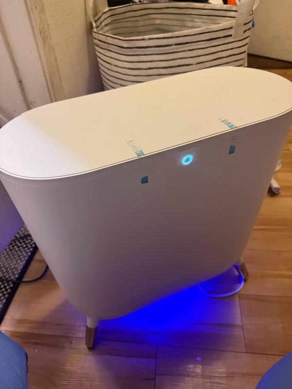 This towel warmer is light weight and easy to store in the bathroom. I like the indicator light at the bottom. It is blue when warming and red when ready. The towels come out warm and a bit moist for comfort. It not scolding hot but just perfect. Being ably to store 2 towels is great. It is super easy to use with just the simple push of a button.