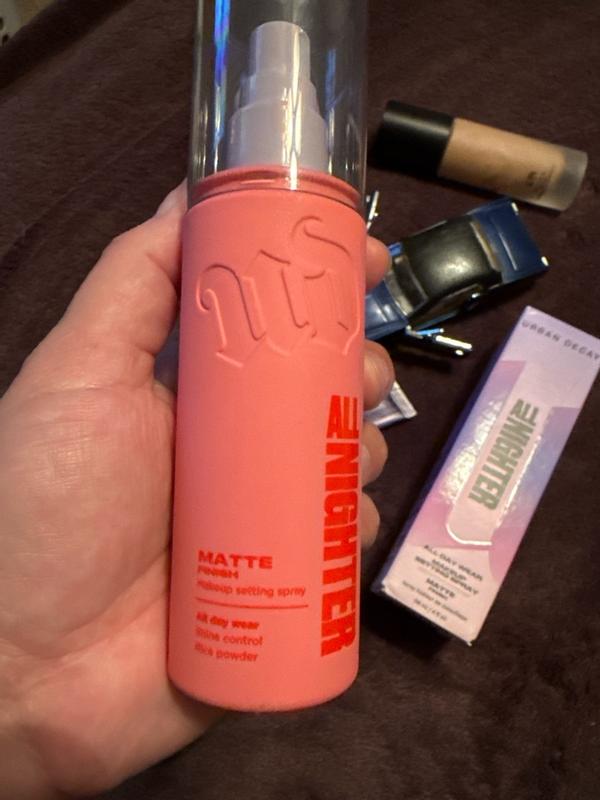 I have been trying the Urban Decay Matte Setting Spray for a bit now and I am honestly shocked at how good it is. I am super picky with setting sprays because so many of them either make my skin feel tight or they do nothing for shine control. This one actually works the way I want it to. The finish is a soft matte look that still feels like skin. It does not look flat or powdery. It makes everything look smoother and more put together, almost like a light filter on top of my makeup. And the staying power is insane. I wore it through errands, filming, and a workout and my makeup still looked fresh. No melting, no separation, and no oily T zone. I did not touch up once. It also feels very lightweight. No sticky feeling and no heaviness. It blends into the makeup right away and makes everything look more polished. If you deal with shine, this spray really controls it without drying your skin out. If you want a matte setting spray that actually lasts through a real day and not just a few minutes, this one is worth it. I am genuinely impressed and it is definitely staying in my routine.