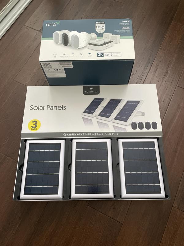 3 Solar panels installed 2 years ago. Meet all power needs even in Northern IN where we don't get much sunlight and lots of snow during the winter. Just brought 3 more for my summer home to power 3 Arlo Pro 4.